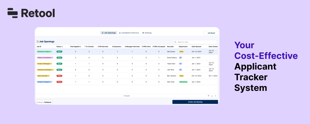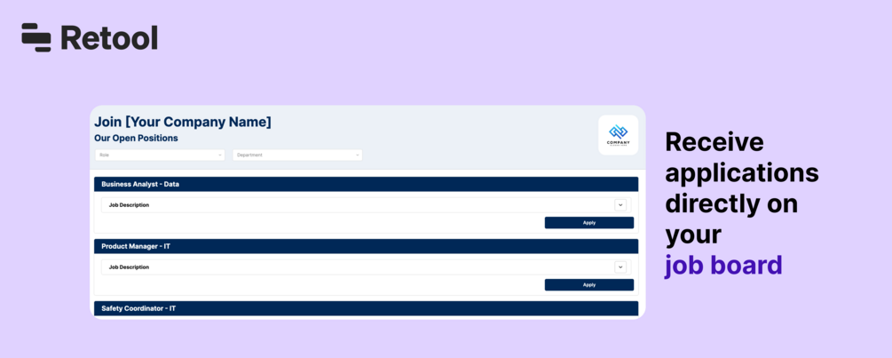 2 Retool Applications (Job Board + Applicant Tracking System), 4 Datasets to store your data in Retool & a detailed step-by-step guide to help you set up everything in 5 minutes!